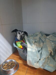 Destiny je srednje velika galgina, ki je v zavetišče prispela tekom našega obiska v zavetišču. Pripeljal jo je lovec, skupaj z mlajšo psičko Serio (ki že ima zagotovljen dom v Sloveniji) in ob pogledu na Destiny nas je zabolelo srce. Imela je 3 tumorje na mlečnih žlezah in mreno na obeh očesih. Ob sterilizaciji smo ugotovili, da je okužena z glisto Dirofillaria Repens, kar je otežilo okrevanje po posegu, ampak sedaj je že čisto ok.
