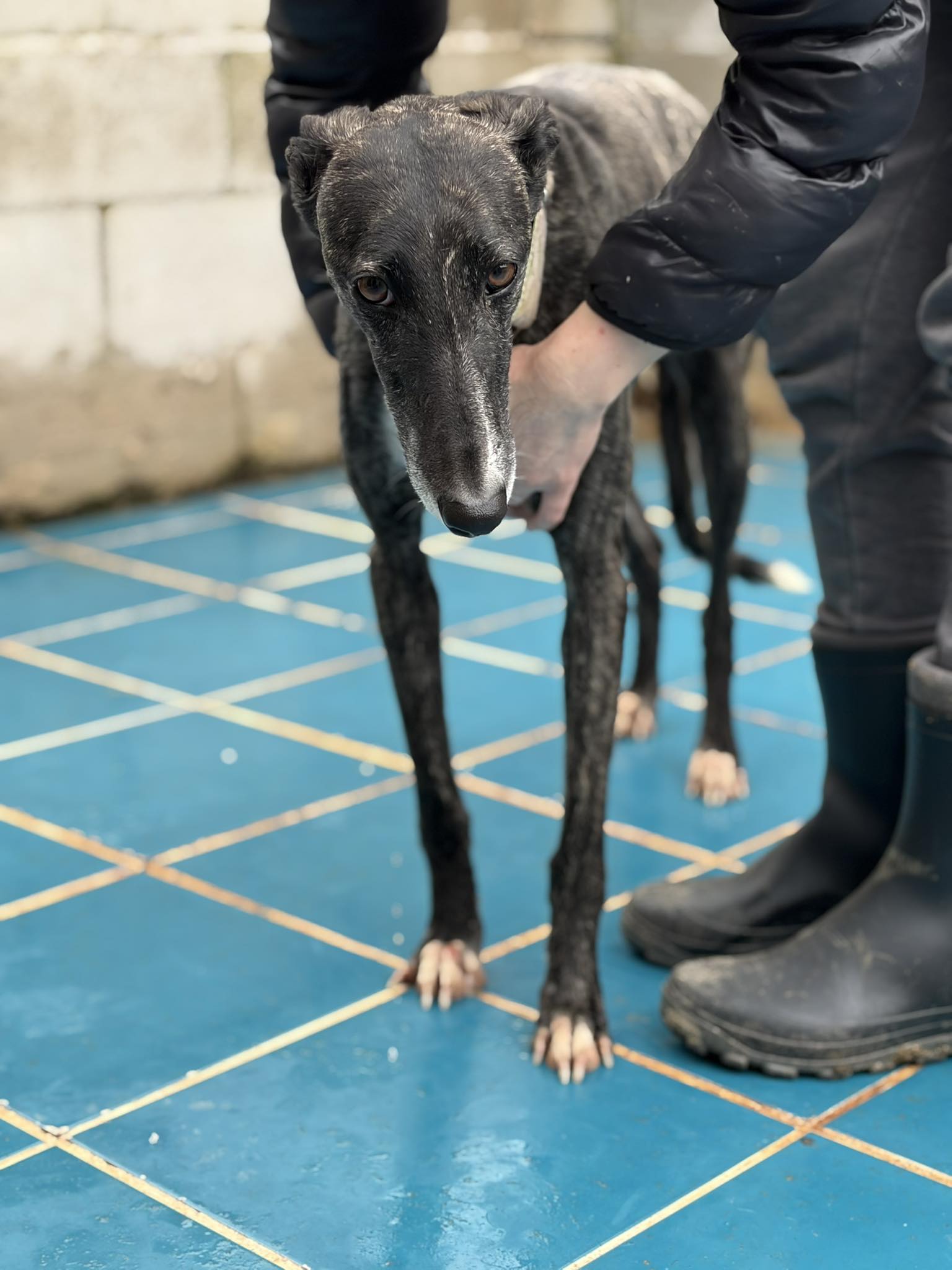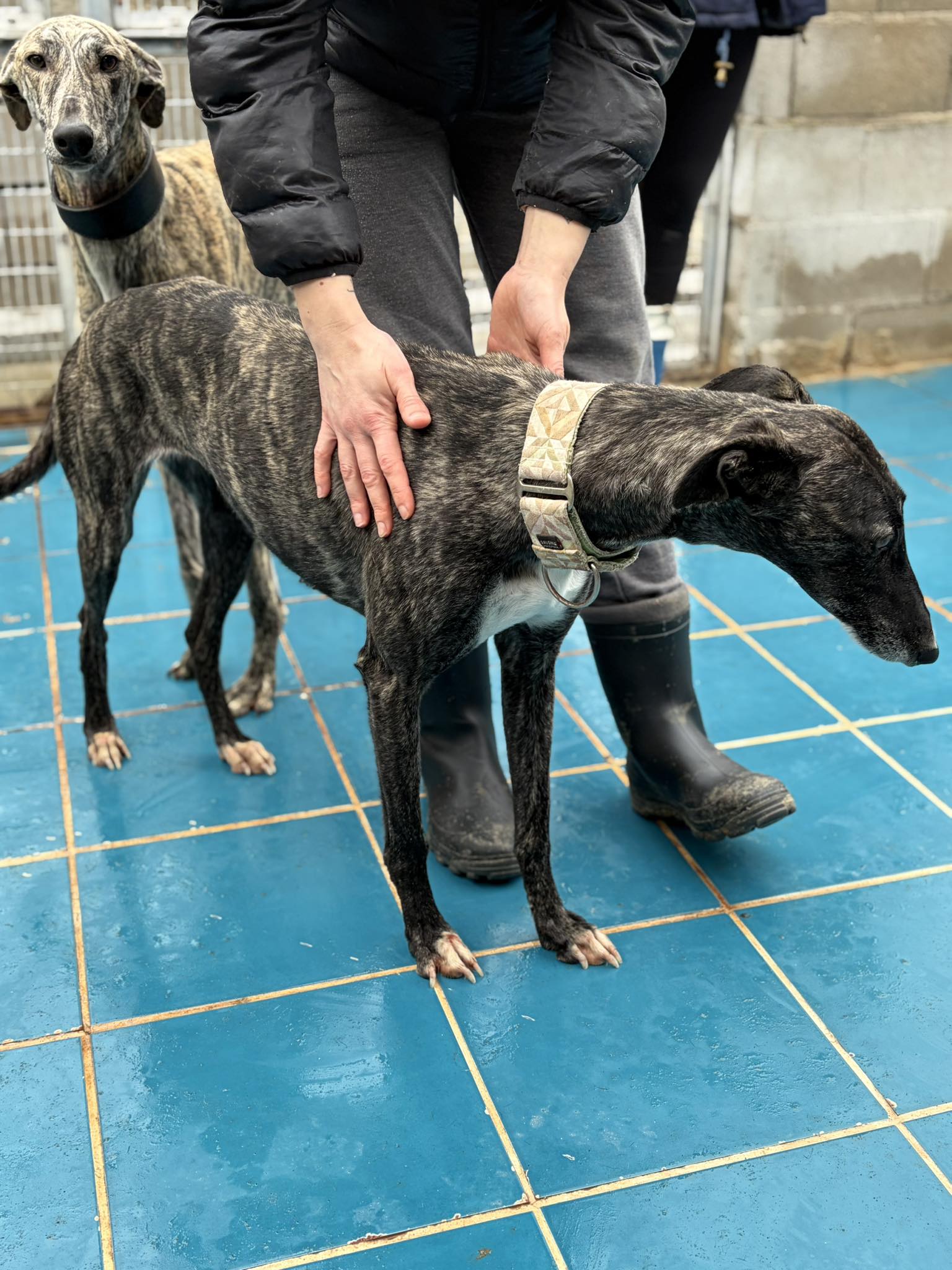 Cassia je srednje velika galgina brindle barve, ki je v zavetišče prišla decembra 2025. Sprva je malce zadržana, a radovedna, tako da te hitro pride ponoskat, prevohat in oceni, da nisi preveč grozen. Rabi malce spodbude, da pride bližje, se sprosti in uživa v božanju. Je bolj umirjena in nežna, vsekakor pa verjamemo, da se bo v varnem, domačem okolju razživela in razigrala, saj ni stara niti 3 leta.